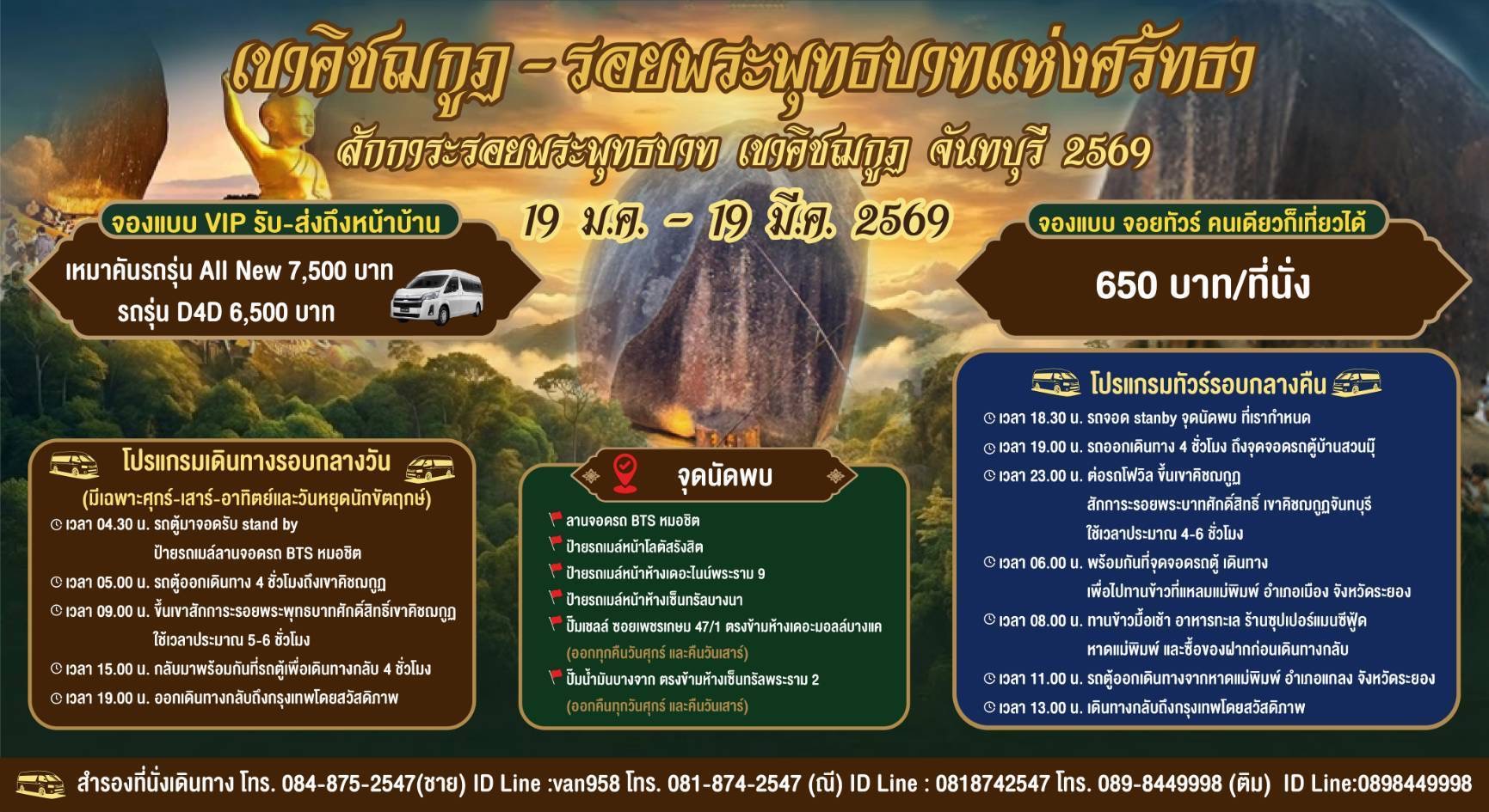 🔕 ข้อห้าม ในการโดยสารรถตู้ไปเขาคิชฌกูฏ 1. ห้ามสูบบุหรี่บนรถตู้ 2. ห้ามนำสัตว์เลี้ยงขึ้นรถตู้ 3. ขณะโดยสารบนรถตู้ ขอความร่วมมือทุกคน สวมหน้ากากอนามัยเพื่อสุขภาพของผู้โดยสารท่านอื่น 4. ถ้าลูกทัวร์ ลงจากเขาก่อน เวลา 06.00น. ห้ามรบกวน พขร. เนื่องจากต้องพักผ่อนให้เพียงพอเพื่อความปลอดภัย ในการเดินทาง ควรนั่งรอ ร้านกาแฟ หรือร้านอาหาร หรือเช่าเปลผ้าใบนอนรอก็ได้ เช่นกันครับ